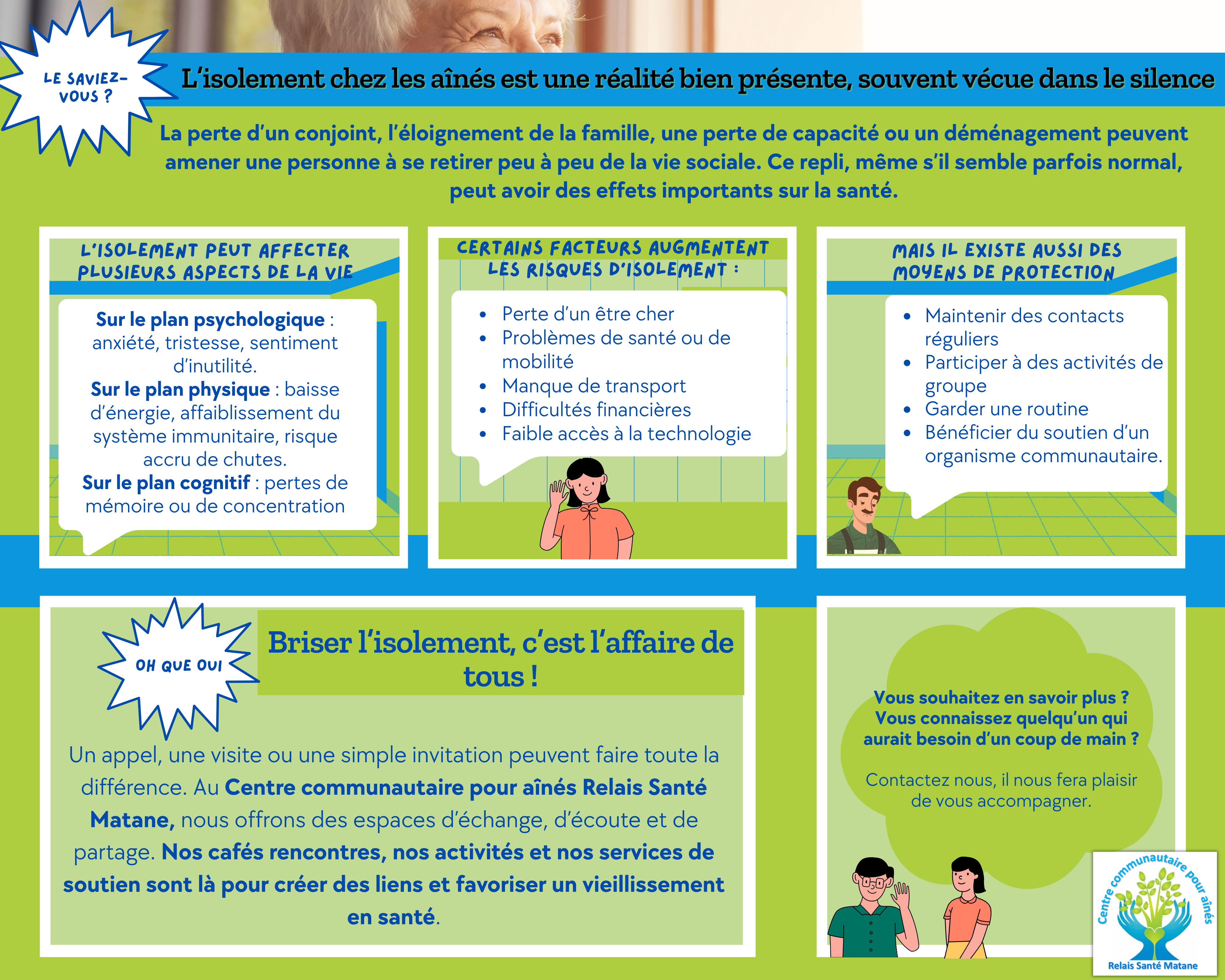 Joëlle Murray (2025), l'isolement chez les aînés une réalité bien présente, souvent vécue dans le silence. Article rédigé dans le cadre de son évalution de stage, avril 2025.